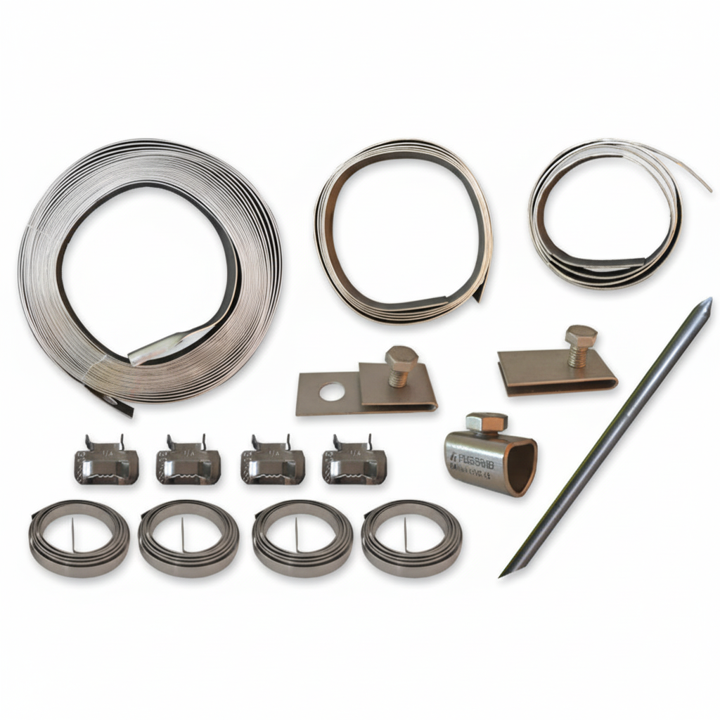 El Kit de Puesta a Tierra para Media Tensión es una solución de ingeniería robusta diseñada para la protección crítica de Transformadores de Distribución y Pararrayos. Garantiza una ruta de baja impedancia para la disipación segura de corrientes de rayo y corrientes de falla, cumpliendo con los más altos estándares de seguridad y confiabilidad en redes.